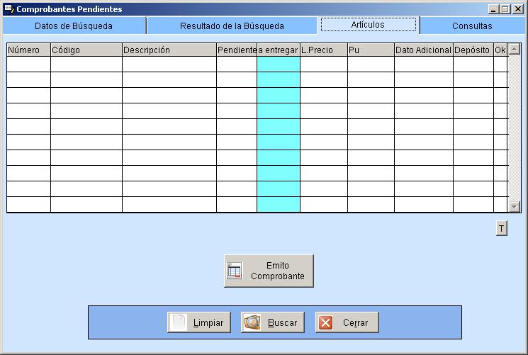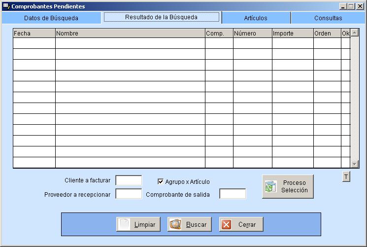 de los comprobantes pendientes, de acuerdo a los datos de búsqueda ingresados.