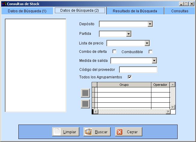 elegir de la lista el depósito que se incluirá en la búsqueda. Los valores aquí