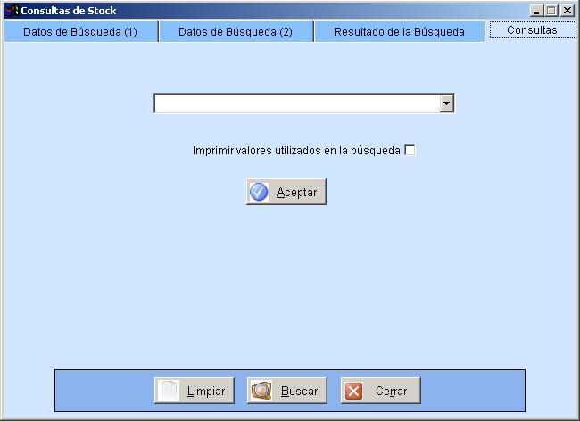 A esta opción accede seleccionando del menú principal Consultas, la opción Consultas de Stock.