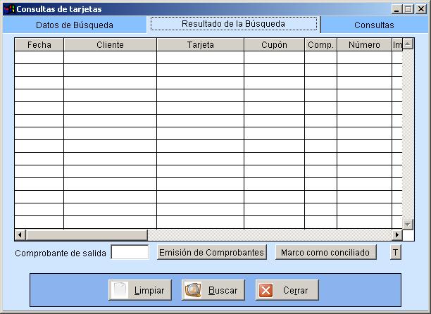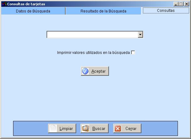 A esta opción se accede desde el menú principal Consultas, y dentro de éste seleccionando Consultas de Tarjetas.