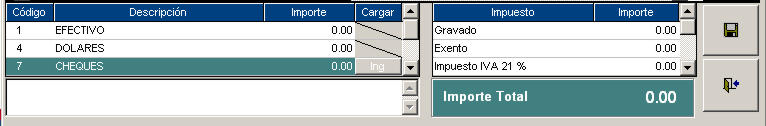 En esta sección de la pantalla se podrá visualizar las formas de pago en la que se podrá emitir el comprobante y la discriminación de impuestos que se realiza del monto total, según la condición de IVA del cliente.