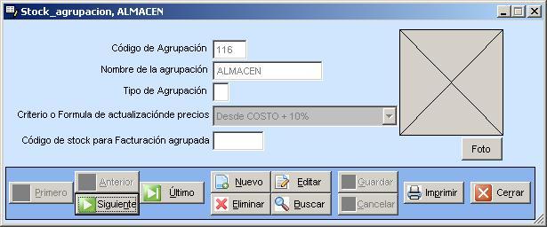 Esta opción permite crear distintas agrupaciones en el Stock del sistema,