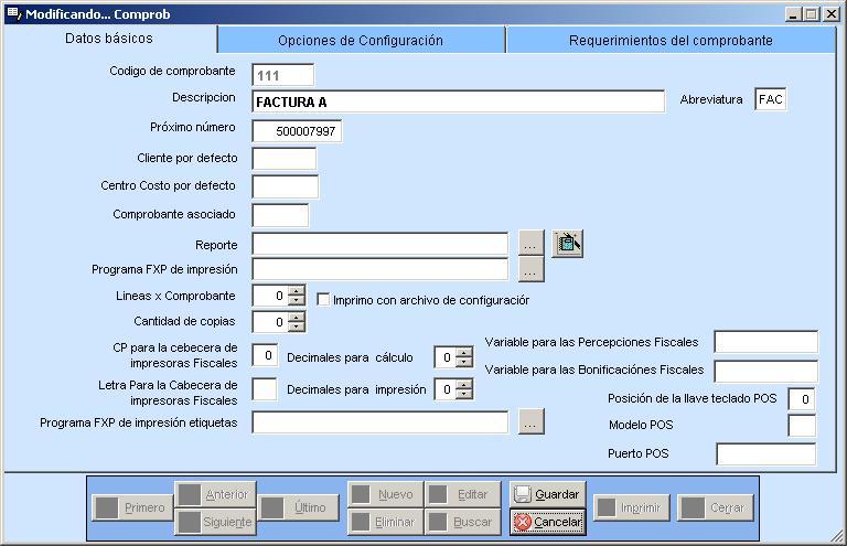 | Próximo Número | Número con el que se va a imprimir el próximo comprobante en el sistema. |