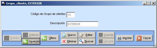 A esta opción se accede desde el menú principal Mantenimiento, luego elegimos Datos Complementarios y dentro de éste seleccionando Grupo de Clientes.