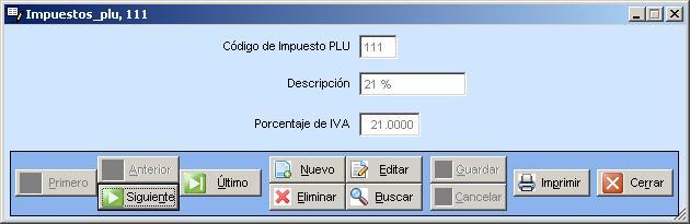 A esta opción se accede desde el menú principal Mantenimiento, luego elegimos Impuestos y dentro de éste seleccionando Impuestos de Artículos.