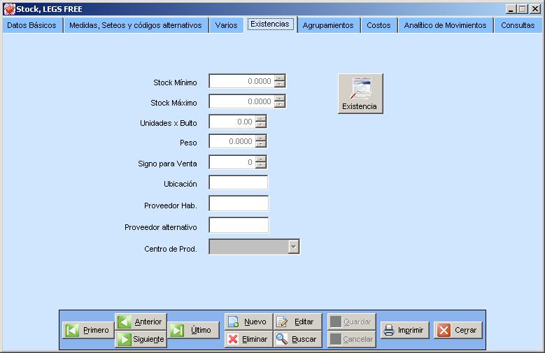 esta opción se accede desde el menú principal Stock, y dentro de éste