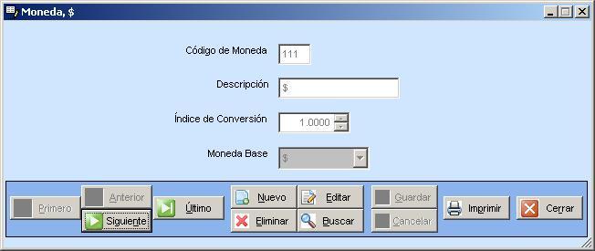 En esta opción se podrán definir los distintos tipos de moneda con las que trabajará el sistema, para las listas de precios de los productos de stock.