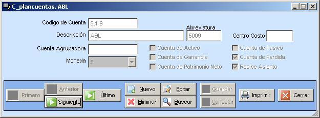 Permite definir cada una de las cuentas que integrarán el Plan de Cuentas que intervendrá en el ejercicio contable.