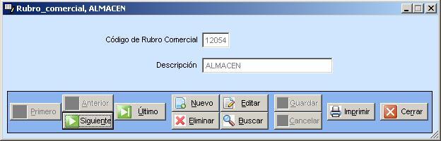 A esta opción se accede desde el menú principal Mantenimiento, luego elegimos Datos Complementarios y dentro de éste seleccionando Rubro Comercial.