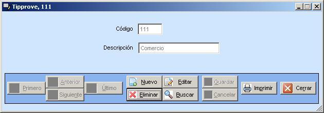 Esta opción permite definir los distintos tipos de proveedores con los que trabajará el sistema, de esta manera puede realizar una clasificación de los proveedores.
