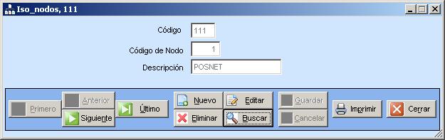 Permite la administración de los nodos con las cuales se opera. Para acceder a esta opción, seleccione Mantenimiento del menú principal del sistema, luego la opción Tarjetas ON LINE y dentro de éste la opción Tarjetas - Nodos.