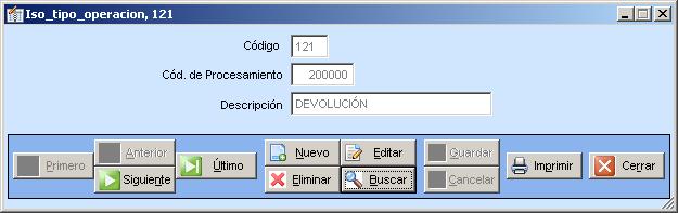 Permite la administración de los tipos de operaciones con las cuales se opera. Para acceder a esta opción, seleccione Mantenimiento del menú principal del sistema, luego la opción Tarjetas ON LINE y dentro de éste la opción Tarjetas - Tipos de Operaciones.