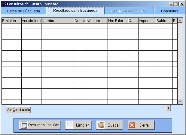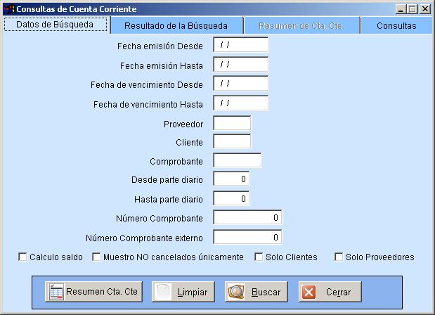 Desde aquí se podrá realizar consultas de cuenta corriente de Clientes y de Proveedores. A esta opción accede seleccionando del menú principal Consultas, la opción Consultas de Cuentas Corrientes.