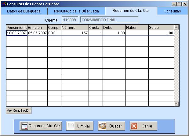 El Botón Resumen Cta Cte se utiliza para acceder al panel de Resumen de Cta. Cte y ver el detalle de la cuenta corriente. Se debe haber seleccionado un cliente o proveedor.