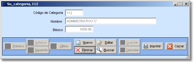 Esta opción permite realizar el mantenimiento de las Categorías de empleo que el sistema maneja. Para ello permite el ingreso de los siguientes datos: