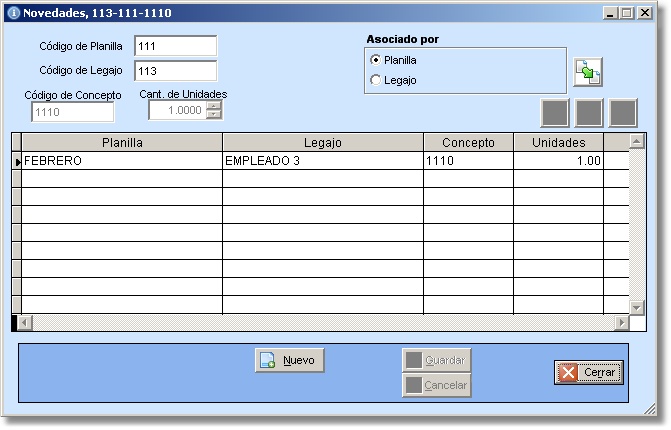 Permite especificar la cantidad del concepto que se agregará a las Novedades de Liquidación, para dicho legajo. |